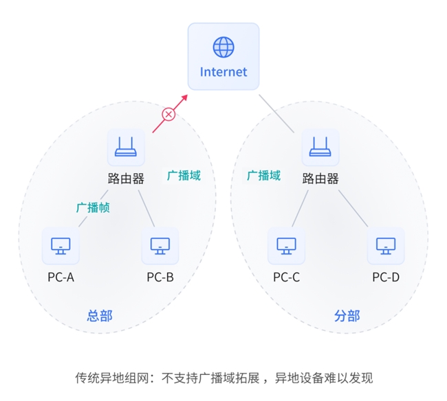 传统的网络互联方案,如MPLS专线或基于IP层的VPN,普遍存在部署周期长、建设成本高、运维复杂度大等现实问题。更为关键的是,在工业场景中,大量设备依赖基于二层网络的广播与组播机制进行通信,而传统三层网络无法透传此类协议,导致远程设备无法被有效发现与操控。