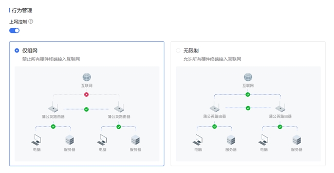 所有跨域通信均采用RSA/AES等高强度加密算法,确保生产数据在公网传输过程中的机密性与完整性。同时,管理员可对网络内终端的访问行为进行精细化权限控制,从访问源头构建安全防线,满足企业对网络安全的合规要求。